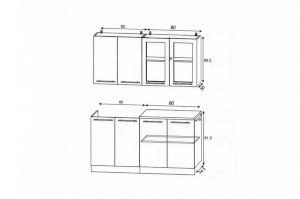 Высота верхних шкафов (мм) | 685 |