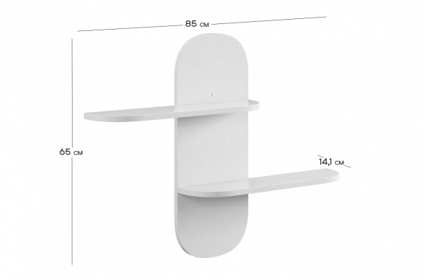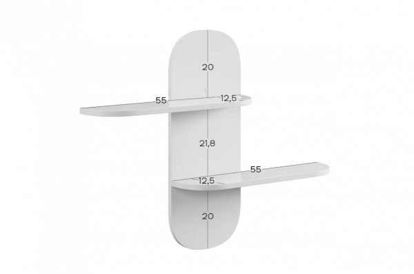 Полка выполнена из ЛДСП, что обеспечивает прочность и надёжность конструкции. Модель оснащена двумя открытыми полками, на которых удобно разместить книги, игрушки, декоративные элементы или учебные принадлежности. Открытый формат делает нужные вещи всегда доступными и визуально не перегружает пространство.
